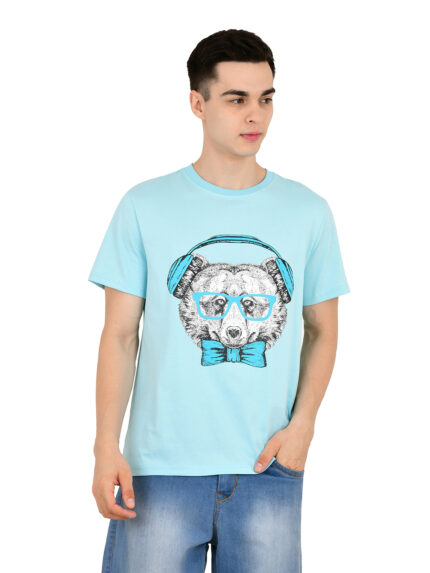 Cool Bear with Headphone Pure Cotton Blue Round Neck T Shirt for Men (Copy)