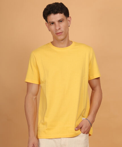 Men’s Premium Pure Cotton Plain Round Neck Yellow T-Shirt